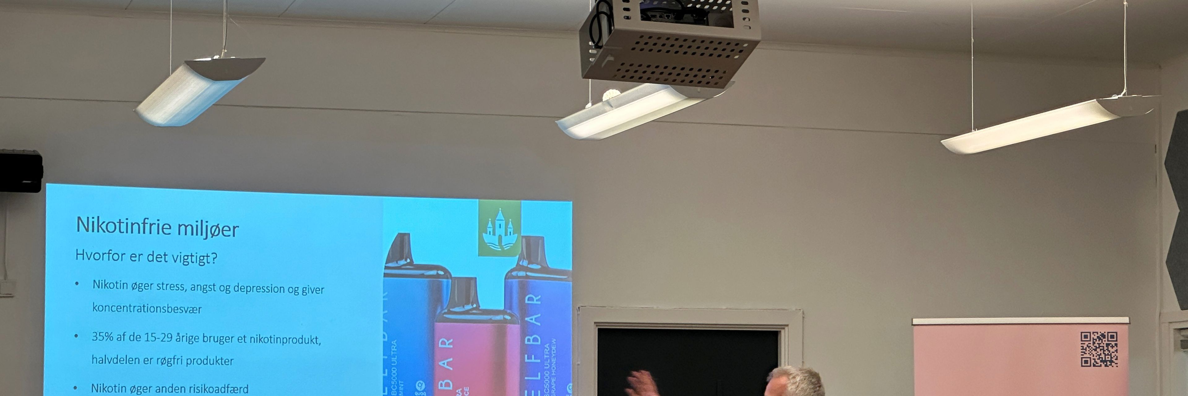 Til workshoppen præsenterede forebyggelseskonsulent i Randers Kommune, Poul Sejr data om den stigende brug af nikotinprodukter blandt unge – især nikotinprodukter som puff- og elfbars med smag af slik eller sodavand. Han fremhævede bl.a., at børn og unge hurtigere bliver afhængige af nikotin end voksne, og at nikotinprodukter kan øge risikoen for angst, stress, depression og give koncentrationsbesvær.
